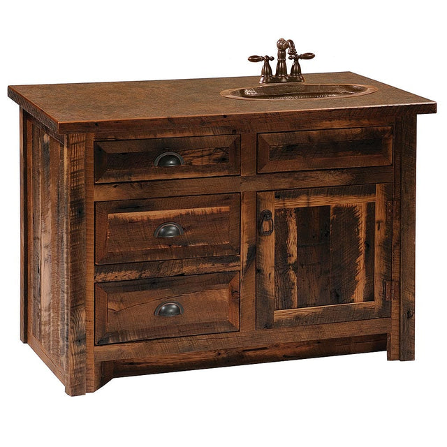 The Barnwood 42" Vanity is made from reclaimed Red Oak from 1800's tobacco barns and is crafted with a traditional plank design. The dull catalyzed lacquer finish is specially designed to be extra durable, while retaining the wood's natural allure. This vanity is handcrafted in Northern Minnesota. Our manufacturer is located 1 hour away from cabinplace.com, which gives us an exclusive relationship that ensures your furniture will live up to our high standards - and yours!