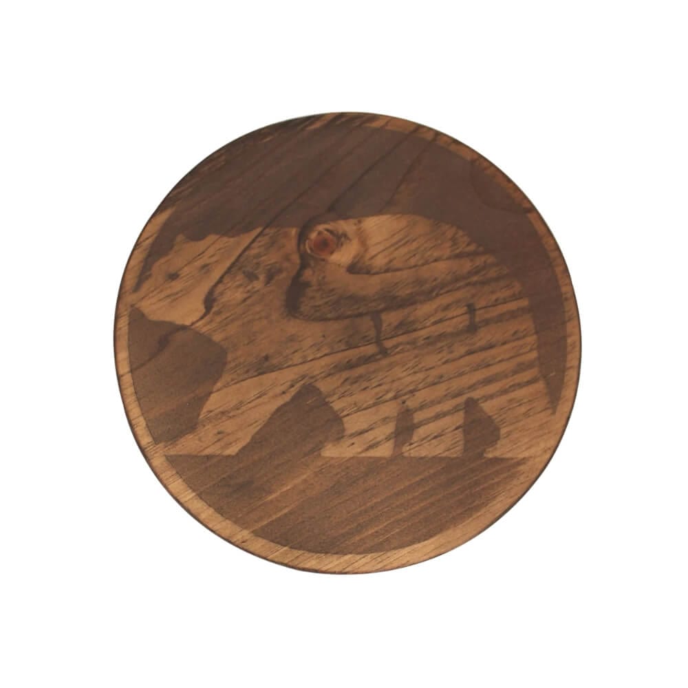 Whether you are decorating a games room or want something rustic for your next party, the Walking Bear Round Drink Table has everything you need. From the round metal base to the solid wood top that depicts a mighty bear, you will love the handsome style and warming tones found in the table.