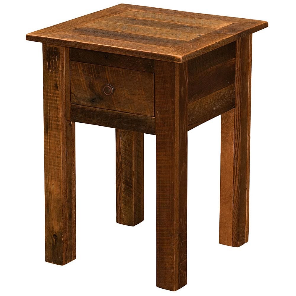 The Barnwood 1 Drawer End Table is made from reclaimed Red Oak from 1800's tobacco barns and is crafted with a traditional plank design. The dovetail drawer is inset and features full extension ball-bearing drawer glides, for added beauty and quality. The dull catalyzed lacquer finish is specially designed to be extra durable, while retaining the wood's natural allure. This furniture is handcrafted in Northern Minnesota. Our manufacturer is located 1 hour away from cabinplace.com, which gives us an Exclusive relationship that ensures your furniture will live up to our high standards - and yours!