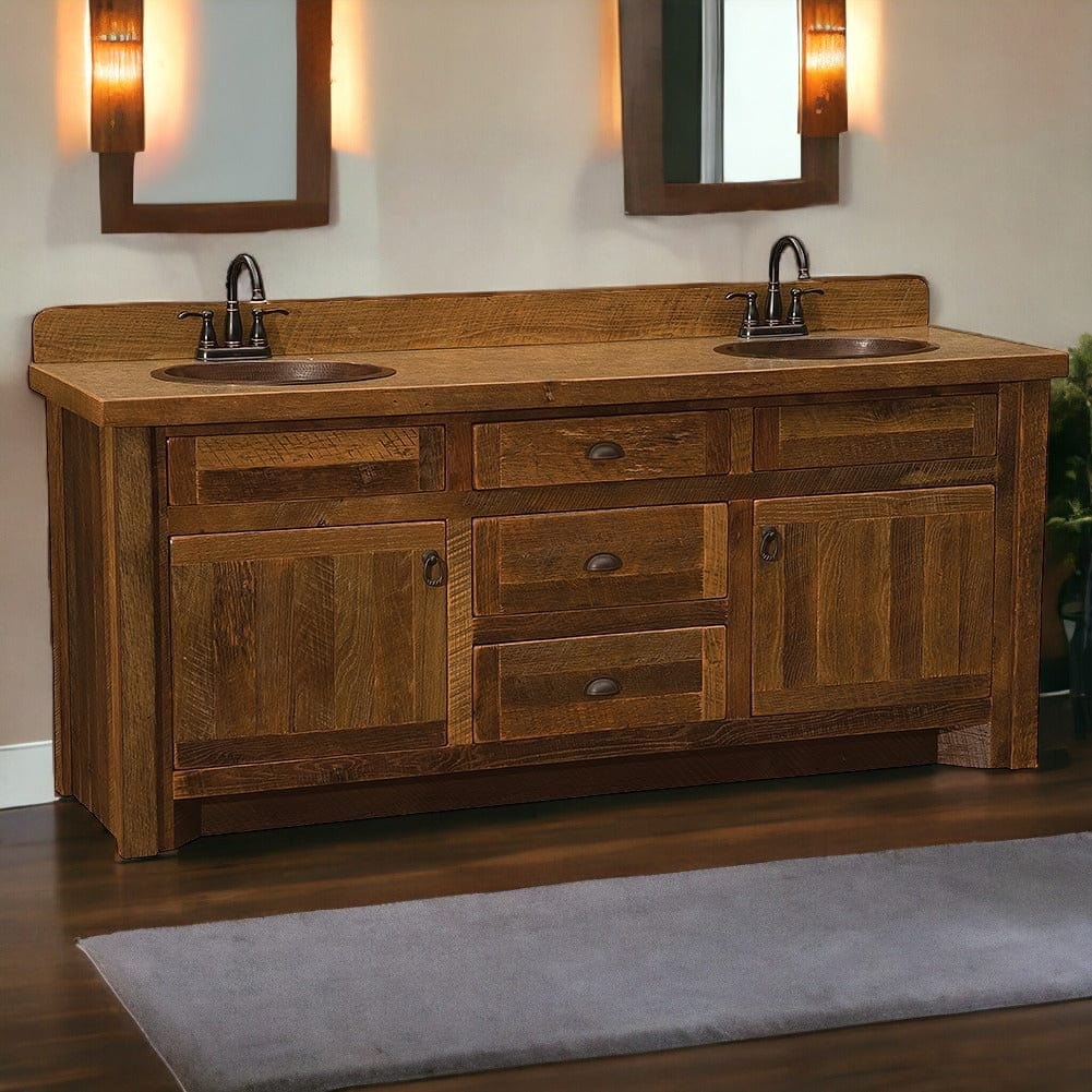 The Barnwood 72" Vanity is made from reclaimed Red Oak from 1800's tobacco barns and is crafted with a traditional plank design. The dull catalyzed lacquer finish is specially designed to be extra durable, while retaining the wood's natural allure. This vanity is handcrafted in Northern Minnesota. Our manufacturer is located 1 hour away from cabinplace.com, which gives us an exclusive relationship that ensures your furniture will live up to our high standards - and yours!