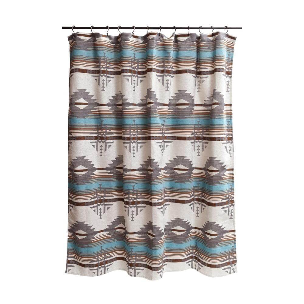 Brighten up the bathroom in your home or cabin while injecting rustic flair with the Dakota Mist Shower Curtain. This shower curtain features a bold design that uses traditional patterns and uses the colors found in nature to create a unique atmosphere. Ideal for any master or guest bathroom.