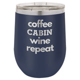 This powder coated 12 oz wine tumbler will make the perfect addition to your cabin kitchen. This tumbler has 2X the heat and cold resistance compared to a glass or plastic wine glass.