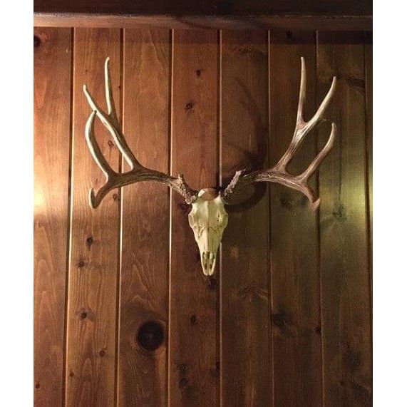 European mounts have become very popular in rustic settings, however they are very pricey - until now. Our Reproduction Mule Deer European mount has been cast from a real European Mount. This mount is crafted so well, that once it is hung up, no one will be able to tell the difference. It measures 28" wide x 26" tall. Easy to assemble and hang. Comes with mounting kit. Can be used to decorate your home, cabin, barn, or property entrance..
