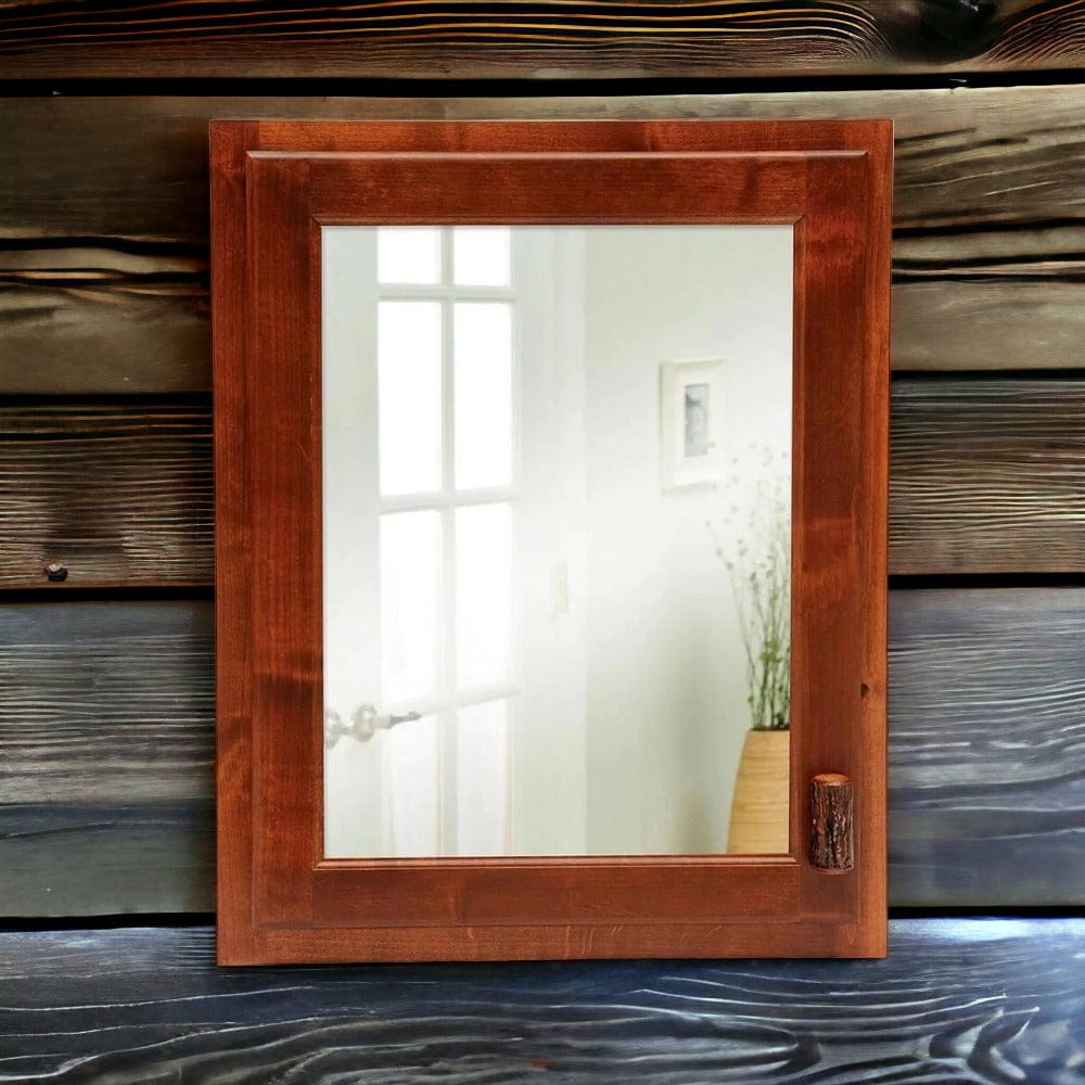 The Hickory Inset Medicine Cabinet is constructed by hand using mortise and tenen joinery and bark-on Hickory logs that have been kiln dried to the perfect moisture content. A clear coat finish is applied to preserve the natural beauty and add durability to the Hickory logs. Our manufacturer is located 1 hour away from cabinplace.com, which gives us an Exclusive relationship that ensures your furniture will live up to our high standards - and yours!