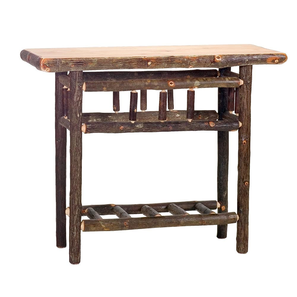 The Hickory Sofa Table is constructed by hand using mortise and tenen joinery and bark-on Hickory logs that have been kiln dried to the perfect moisture content. The drawer is assembled with dovetail joints for a strong, long lasting fit and smooth look. A clear coat finish is applied to preserve the natural beauty and add durability to the Hickory logs. Our manufacturer is located 1 hour away from cabinplace.com, which gives us an Exclusive relationship that ensures your furniture will live up to our high standards - and yours!