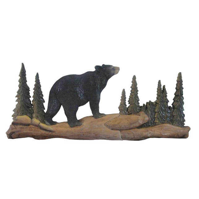 Features hand carved bear and trees