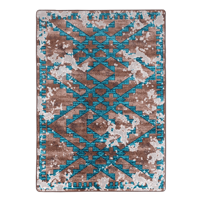 The Turquoise Diamonds Distressed Rug brings Old West flair into your home or cabin. The rug features a striking diamond pattern created by intersecting turquoise lines that include traditional Southwestern design elements. The distressed look makes the rug feel like its a long lost treasure.