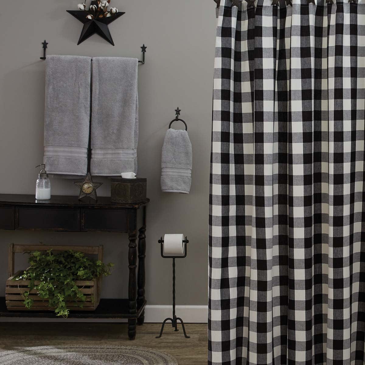 The Rustic Squares Shower Curtain adds more than a layer of privacy in your master or guest bathroom. The traditional checkered pattern in black and cream brings sophistication to the space while highlighting your other bathroom decor choices. This curtain measures 72" x 72" and is easy to install.