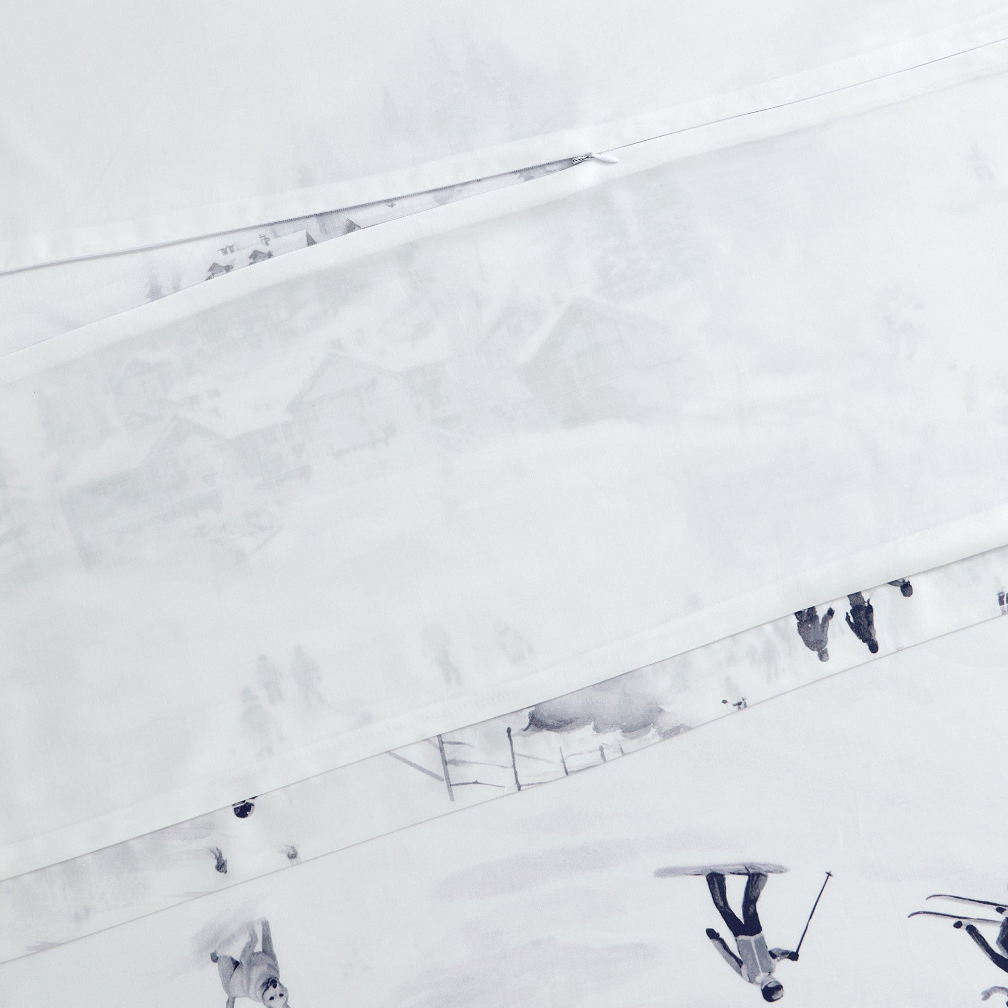 This Ski Slopes Bedding Set is designed with a printed pattern of ski slopes on white and includes a bedding set that includes a quilt or duvet cover and two shams. The set is ultra-soft and lightweight, perfect for any all-season comfort. The classic design will bring a winter wonderland look to your bedroom.