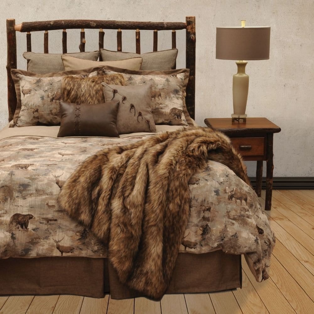 The Wooded Reserve Bedding Set takes you directly into nature with a pattern that features a variety of wildlife. Bears, deer and moose traverse the natural design while the woodland color palette adds warmth and coziness to your room. Includes bedcover, 2 shams, 2 euro shams and 1 alternate euro sham.