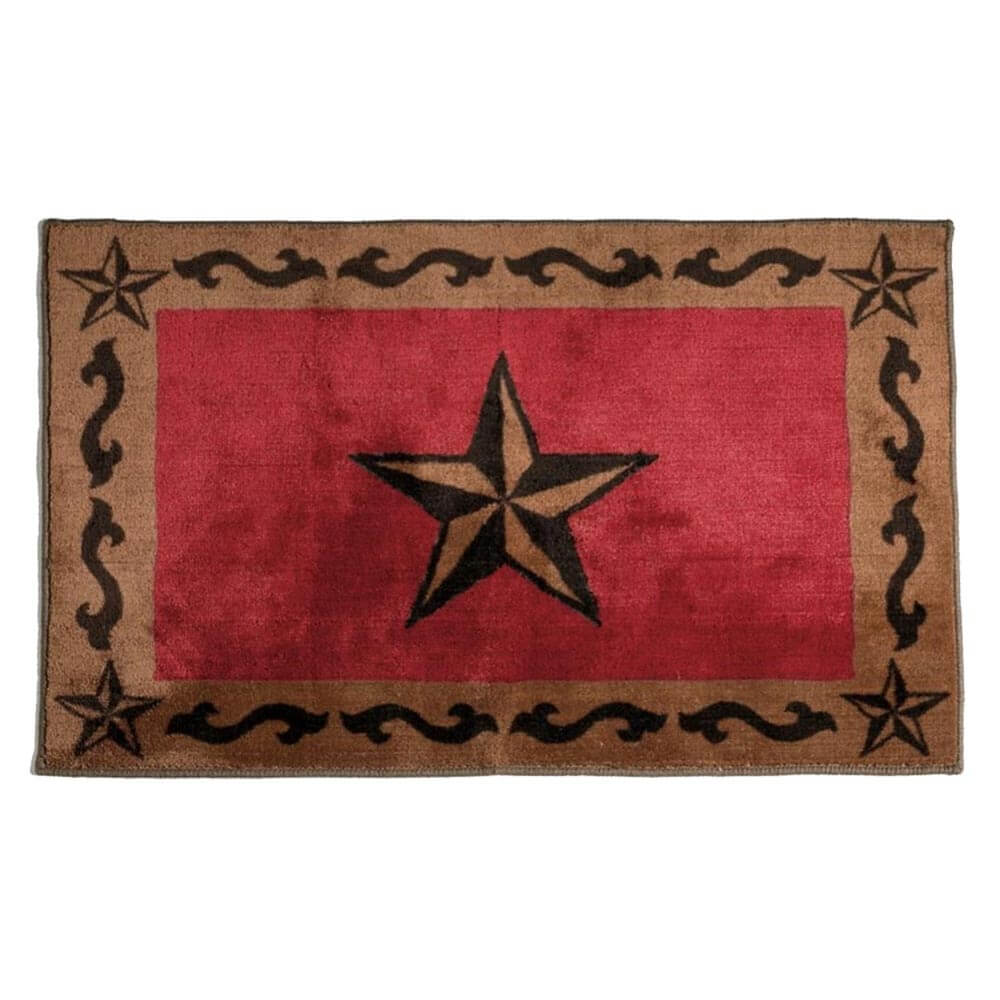 The Red Western Star Bath Mat is a real eye catcher. The bold stars on a red background, with tan trim, blends well together to create a great western look for your bathroom. The bath mat has a non-slip back and is easy to care for. The extra-large size, 24" x 36", can be used for kitchen or bath.