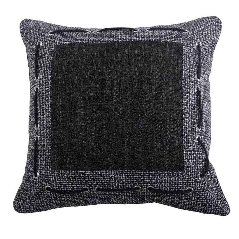 Measures 18"W x 18"H - Features tweed fabric with laced rope detail - Dry Clean