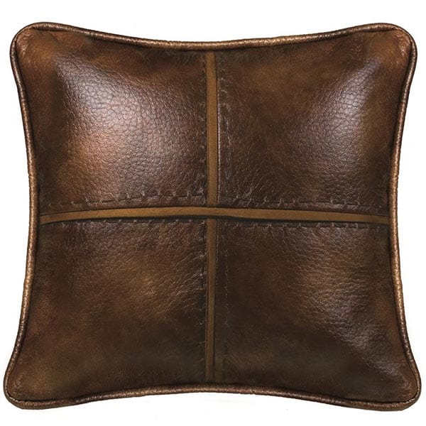 Faux leather� - Hand stitched details - Measures 18" x 18"
