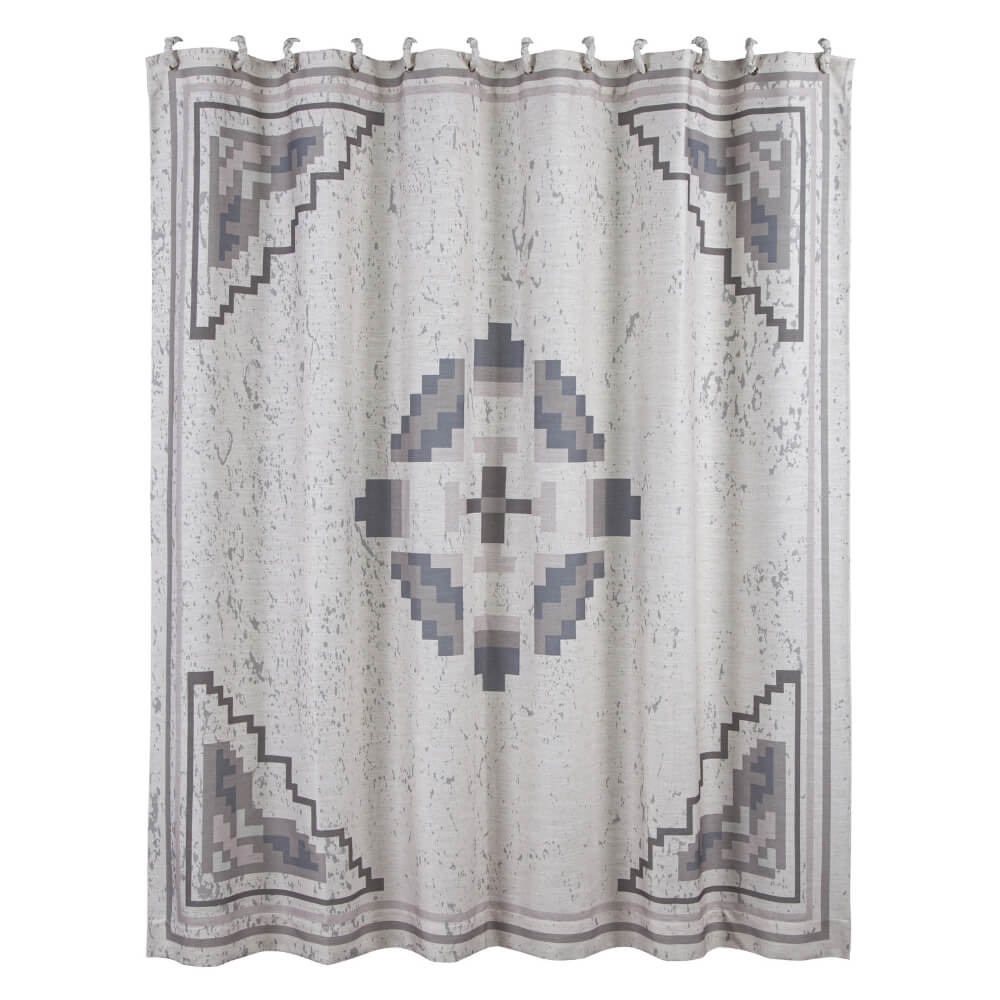 The Great Falls Shower Curtain features an intriguing take on traditional Dakota styles to unify the rustic decor in your guest or master bathroom. The stone gray background is accented by designs in various shades of gray to create a stunning result that will immediately draw your attention.